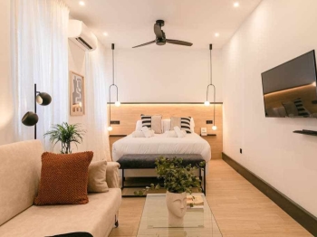 Este maravilloso estudio de lujo, inaugurado en marzo de 2023, está ubicado en el corazón de Sevilla, frente a tres monumentos Patrimonio de la Humanidad. El espacio cuenta con un amplio sofá cama, un baño con cómoda ducha y una cocina completamente equipada con barra de estilo americano, electrodomésticos como tostadora, nevera, batidora, hervidor de agua y cafetera Nespresso, todo para asegurar una estancia muy cómoda. Además, tiene aire acondicionado split frío/calor y ventiladores de techo.