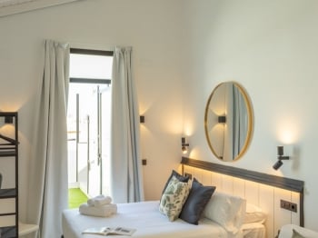 Luminoso y encantador estudio en la última planta de un edificio histórico, con acceso a un patio de uso privativo. El espacio cuenta con una cómoda cama doble de 1,50 m, un sofá cama del mismo tamaño, y un baño completo equipado con gel de ducha y champú. La cocina está totalmente equipada, incluyendo cafetera Nespresso, microondas con grill, lavavajillas y todo lo necesario para preparar tus comidas durante la estancia. El estudio está climatizado con aire acondicionado tipo split y ventilador, y se incluye ropa de cama y toallas. Una opción acogedora, funcional y con mucho encanto para disfrutar de Sevilla desde lo más alto.